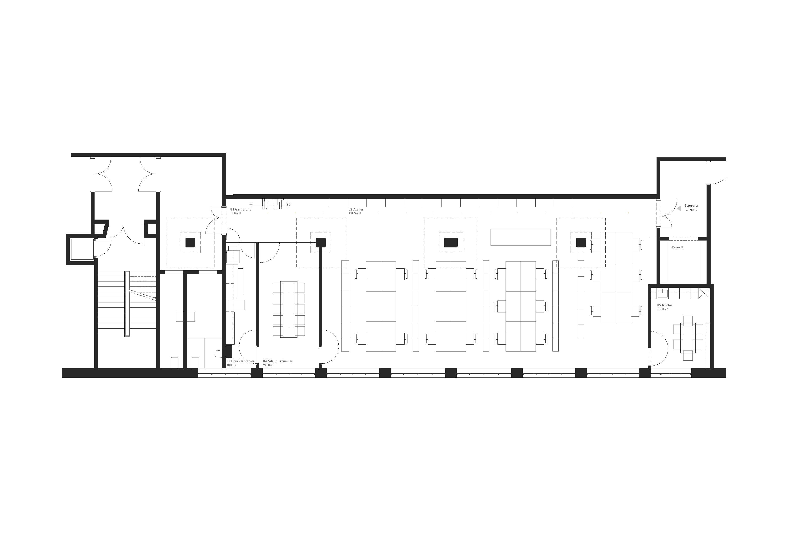 Die Kulturabteilung der Stadt Zürich vermietet in einem Gewerbe-/Bürogebäude an zentraler Lage im 2. OG an der Flüelastrasse 10 einen grossen Arbeitsraum an Kunstschaffende. Der Raum verfügt über eine hohe Decke, gute Lichtverhältnisse und eine Küche. Ein Warenlift ist vorhanden. Eine lärmintensive Nutzung ist ausgeschlossen, mögliche öffentliche Veranstaltungen sind nur nach Absprache und mit Bewilligung der Eigentümerschaft zulässig und dürfen höchstens ein- bis zweimal im Jahr stattfinden.